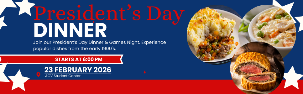 For a fun-filled evening, join us for a Presidential Day dinner and games starting at 6 p.m. The main dish will be a culinary throwback, with flavors and ingredients inspired by President Teddy Roosevelt's favorite foods and other popular dishes from the early 1900s.